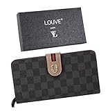 【LOUVE】 財布 レディース 長財布 大容量 (カード12枚収納 多機能 高級PUレザー) ギャランティーカード & プレゼントBOX付き 『ブラックダミエ』